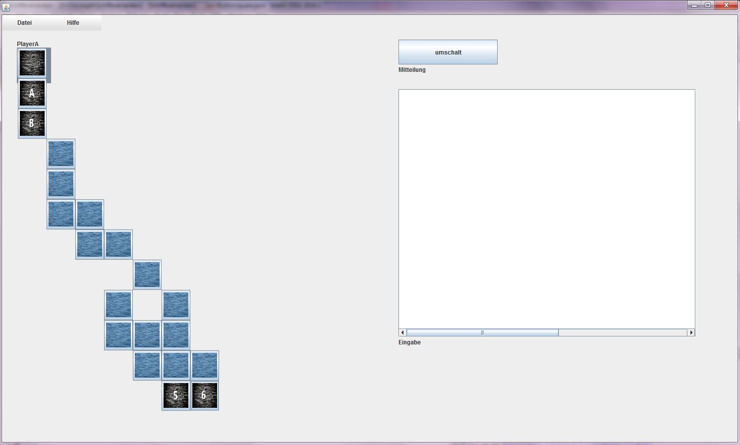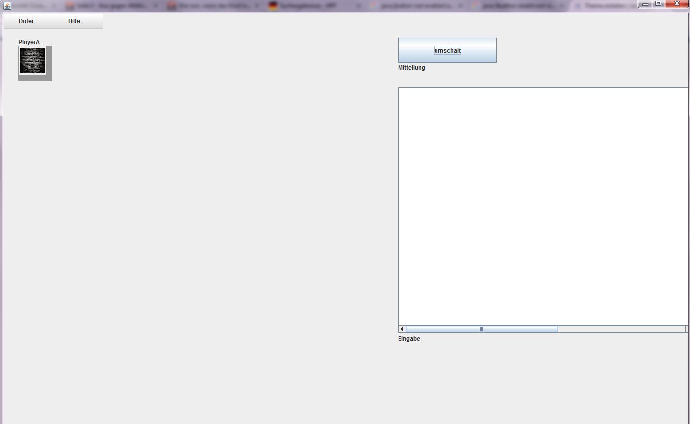 Ich schreib mal einen ganz kurzen Überblick über meine GUI, damit man den Aufbau besser nachvollziehen kann. Meine View(Hauptklasse) erbt von JFrame. View bekommt ein JPanel mit Cardlayout , damit zwischen den einzelnen Spielfeldern gewechselt werden kann. Dieses JPanel bekommt zum Umschalten zwei JPanels. Darin ist jeweils der Titel des Spielfeldes und das Spielfeld enthalten. Das Spielfeld ist selber ein JPanel mit Gridlayout. In dieses werden 12*12 JButtons eingefügt. Alle JButton haben ein ImageIcon. Das ganze soll so gestaltet sein, dass das Spielfeld bis zur Erstellung eines neuen Spiels zwar sichtbar, aber deaktiviert sein soll. Dafür benutze ich setIcon(imageicon) und setDisabledIcon(imageicon).