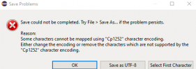 Daraus ergibt sich die tolle Situation, dass Text welcher auf Windows Maschinen geschrieben wird, und mehr als Lateinische Zeichen enthaelt, einfach Kacke zum verarbeiten ist auf allem was nicht Windows ist (auch bekannt als: Der Rest der Welt). Und genau dieses Problem hast du jetzt.